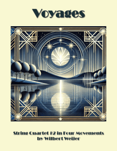 Voyages, String Quartet #2, reflects on different places I visited in the US Southwest in recent years. I envision this as an ever-expanding set of movements, as my wife and I explore more and more places in this amazing country. The current four movements reflect on my visits to Columbine Canyon, near Red River, NM; Lake Meredith, north of Amarillo, TX; and Clayton Lake, near Clayton, NM. The final movement reflects on the most amazing trip of all, namely my life’s journey that took me from my home town of Enschede in the Netherlands to beautiful northern New Mexico, represented here by the Jemez Mountains.
